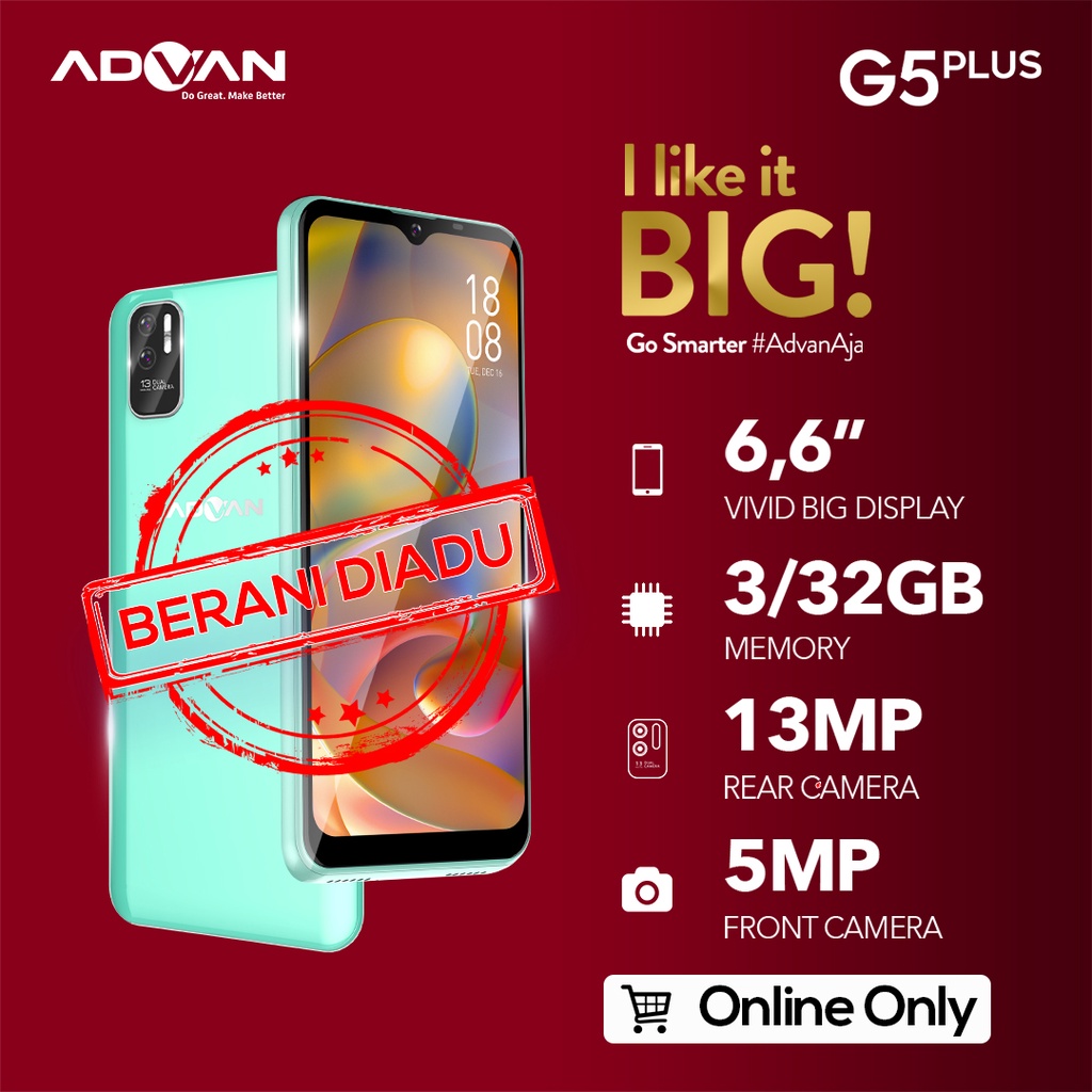 - Produk ini tidak sedang Flash Sale, tidak semua Seller suka Flash Sale, saya rasa ini bukan kekurangan, Jika Anda anggap Harga Rp. 1.199.000,00 itu murah untuk Advan G5 Plus 6.6 (Light Green) HD+ 2.5D Glass 3GB 32GB Octacore 1.6GHz Android 11 Garansi Resmi ya ambil saja