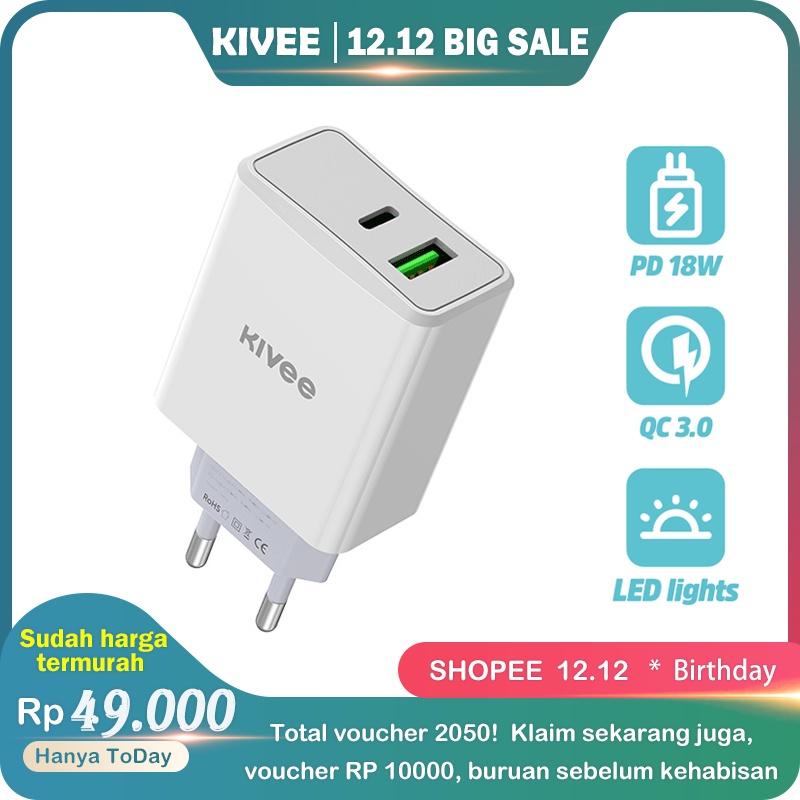 JUAL MURAH KIVEE charger iphone fast charging 18w PD/QC 3.0 Wall Charger oppo xiaomi Garansi 1 tahun TERBARU