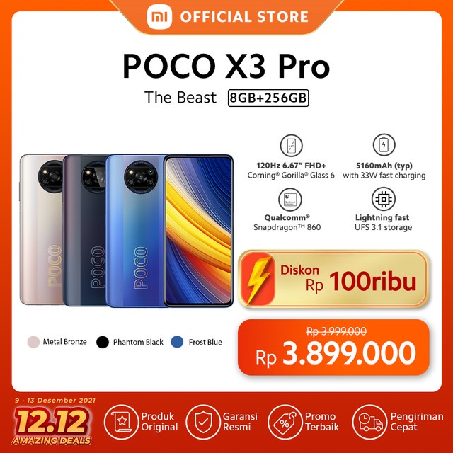 - Produk ini tidak sedang Flash Sale, tidak semua Seller suka Flash Sale, saya rasa ini bukan kekurangan, Jika Anda anggap Harga Rp. 3.899.000,00 itu murah untuk POCO X3 Pro (8GB + 256GB) Snapdragon™ 860 48MP AI AI Quad Kamera Layar 120Hz 6.67” FHD+ 5160mAh ya ambil saja