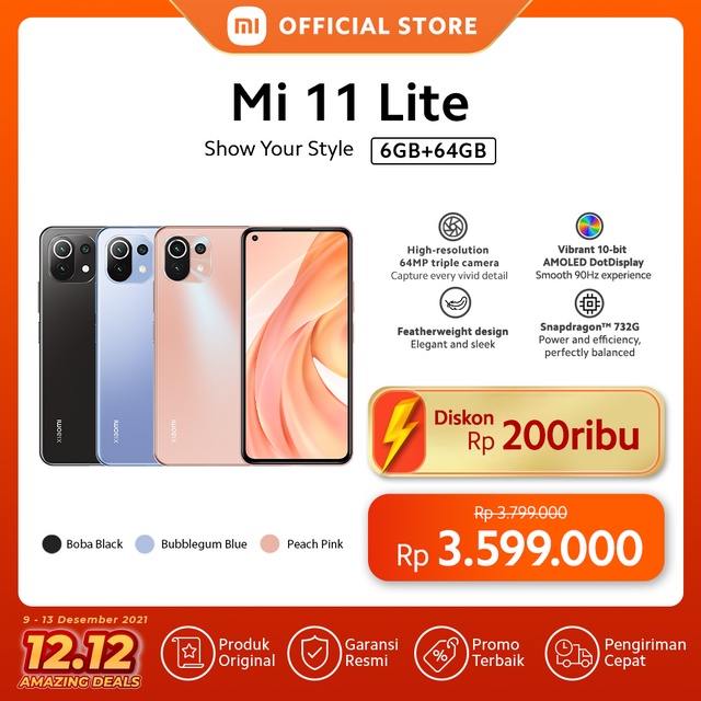 Kelebihan - Kelebihan membeli Xiaomi Mi 11 Lite (6GB+64GB) Qualcomm® Snapdragon™ 732G 64MP AI Kamera Layar 6,55” AMOLED FHD+ 4250m di Toko ini
