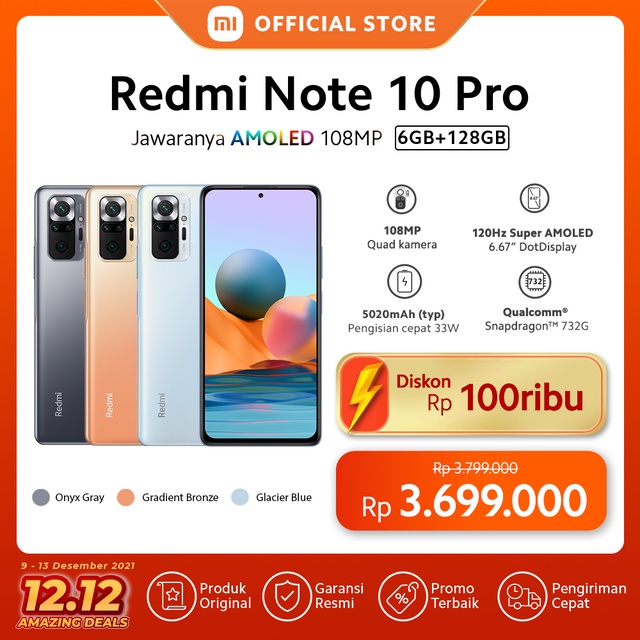 Kelebihan - Kelebihan membeli Xiaomi Redmi Note 10 Pro (6GB+128GB) AMOLED 6.67" 108MP Quad Kamera Snapdragon 732G Baterai 5020mAh di Toko ini